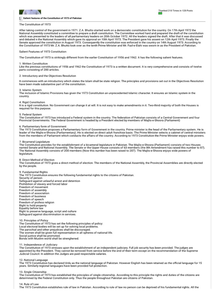 Salient Features Of The Constitution Of 1973 Of Pakistan Css Forums Parliament Of Pakistan Sources Of Law